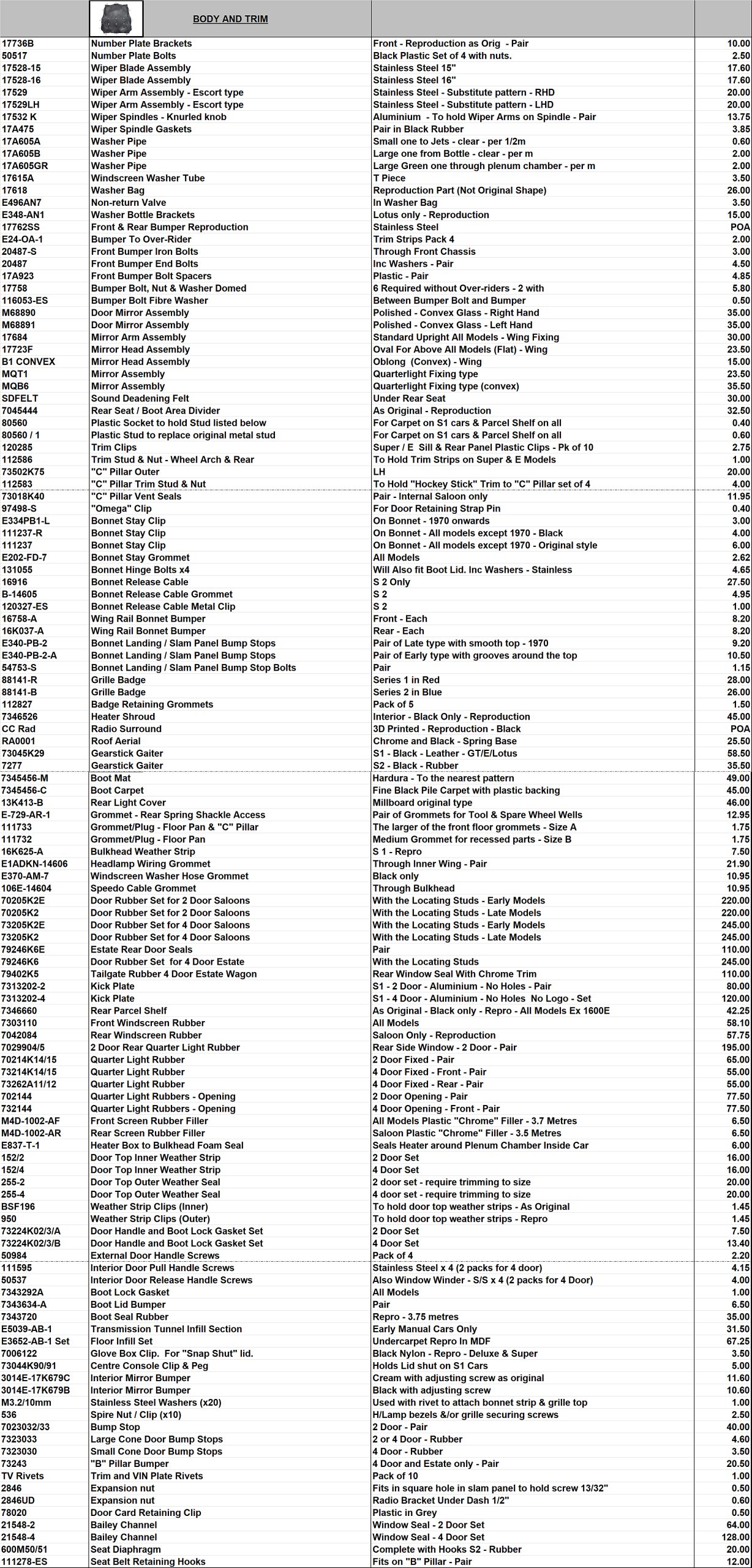 Every effort is made to keep the catalogue current, but please note stock availability and prices are subject to constant change.