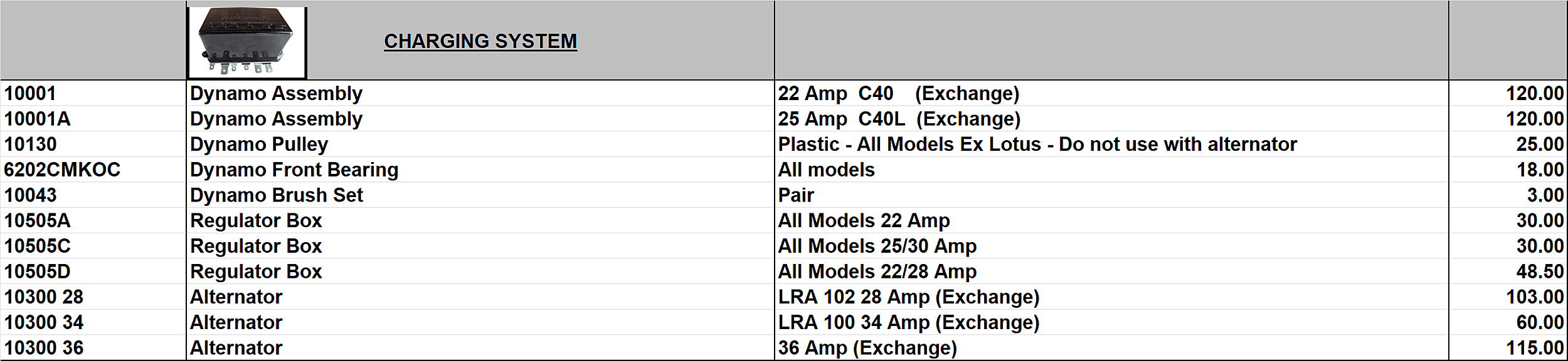 POA – Price on Application NLA – No Longer Available