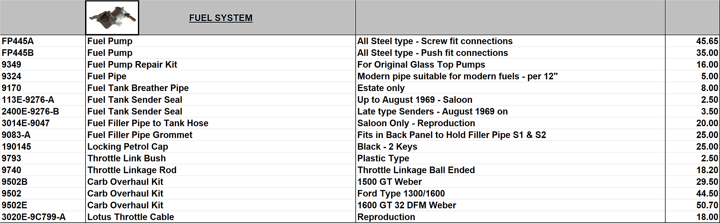 Every effort is made to keep the catalogue current, but please note stock availability and prices are subject to constant change.
