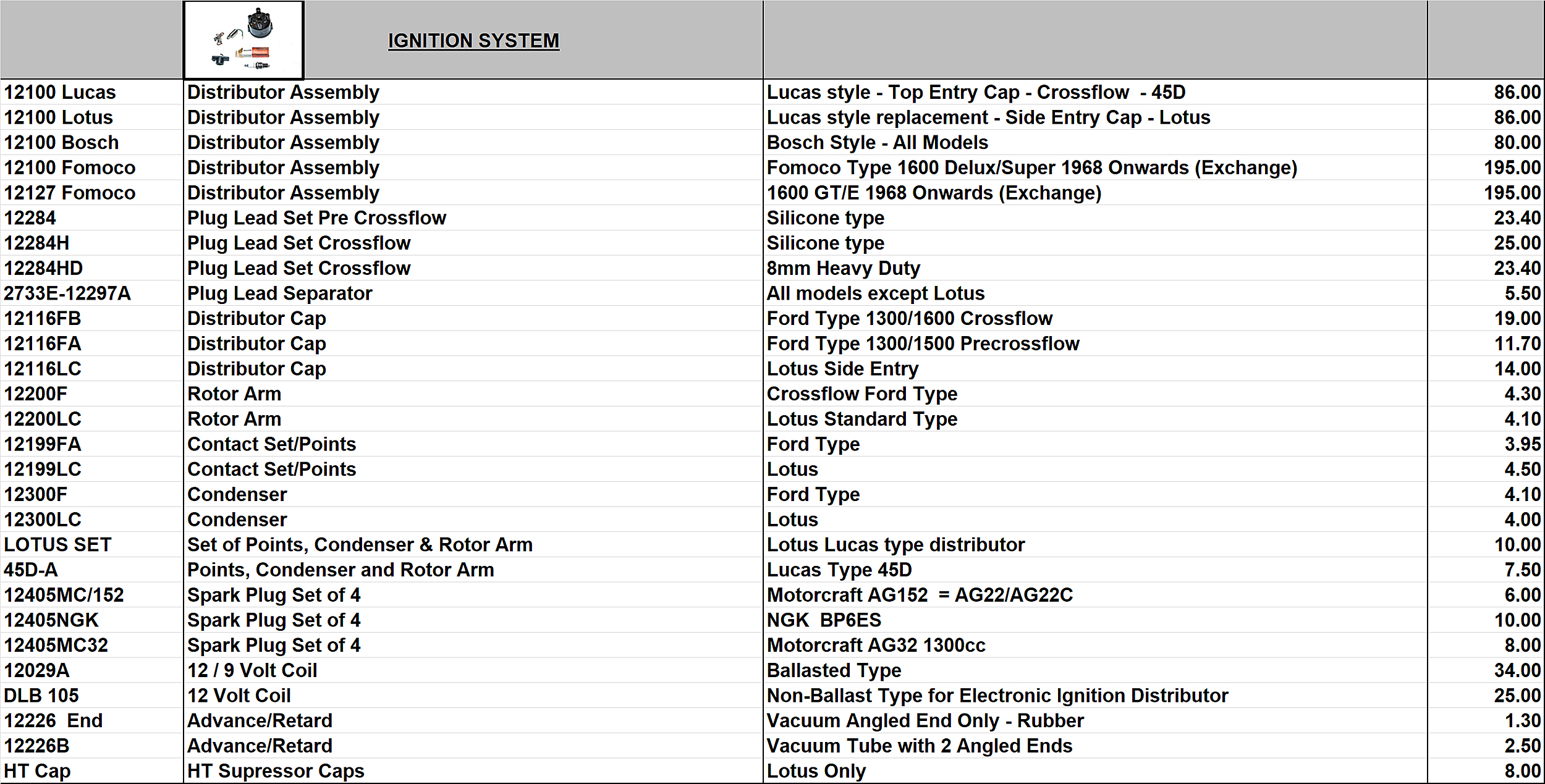 POA – Price on Application NLA – No Longer Available