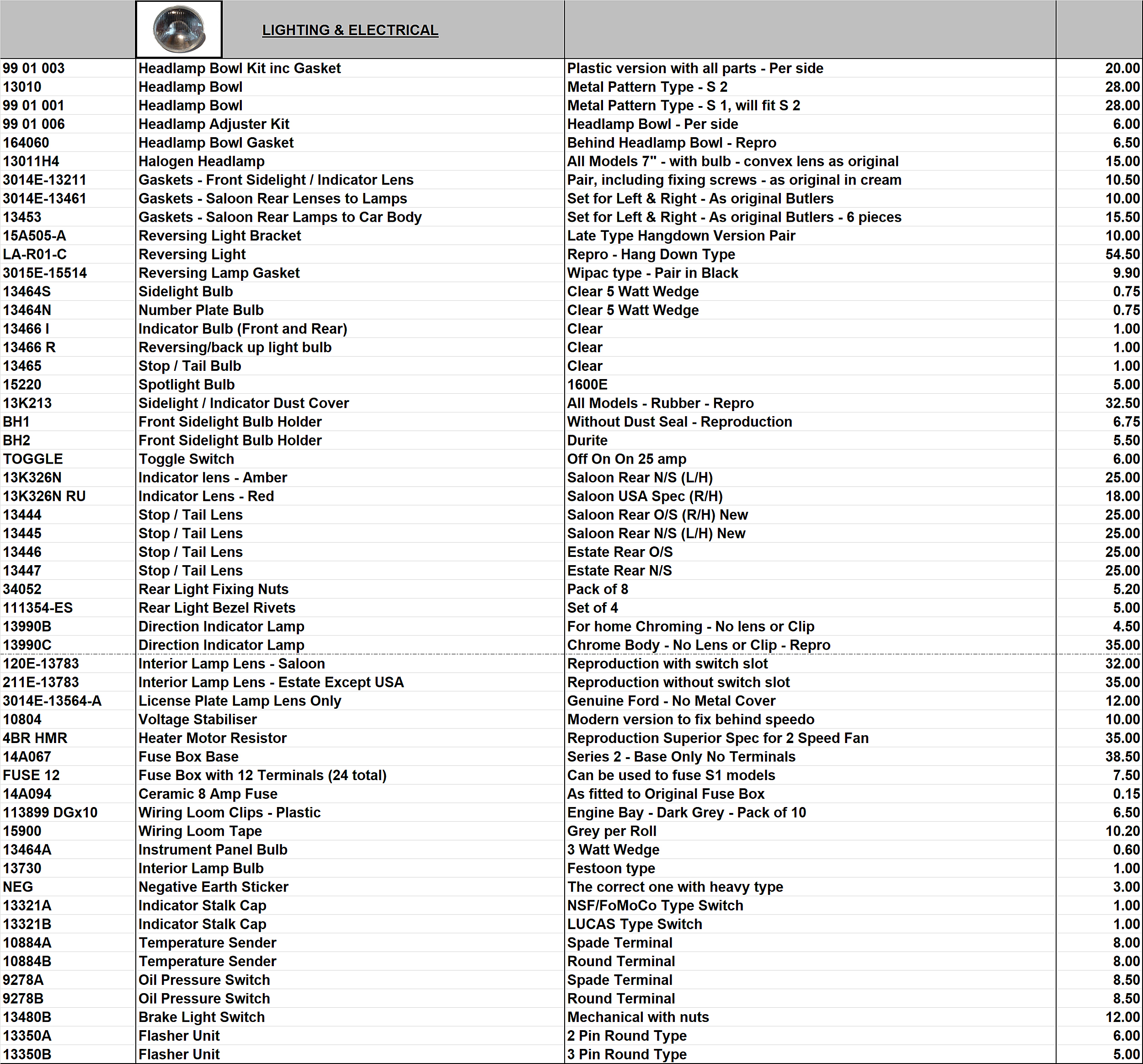 Every effort is made to keep the catalogue current, but please note stock availability and prices are subject to constant change.