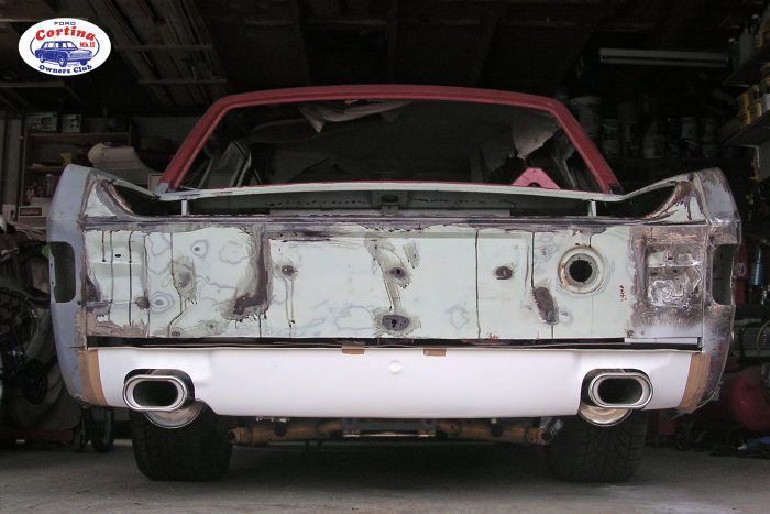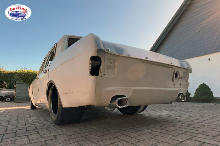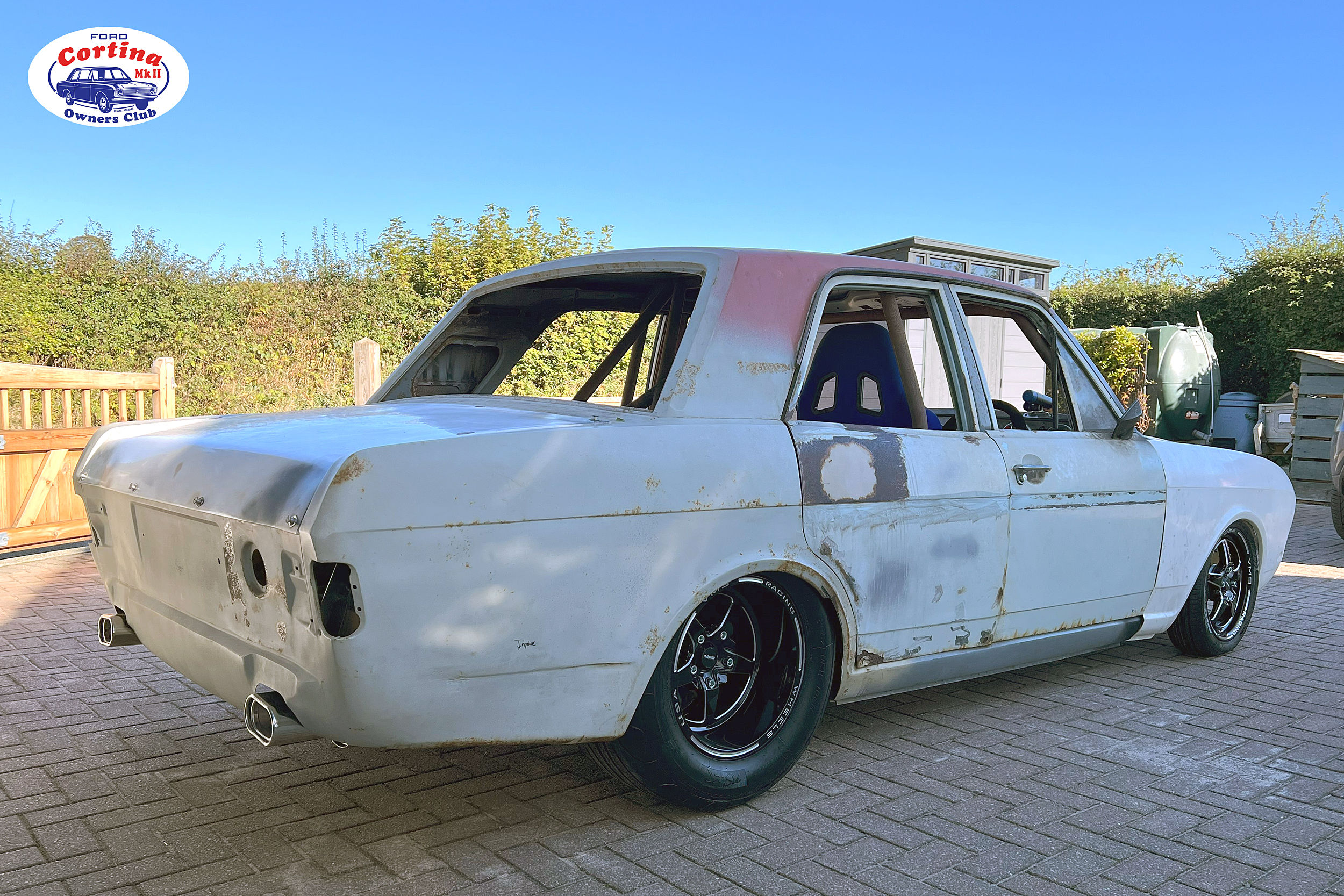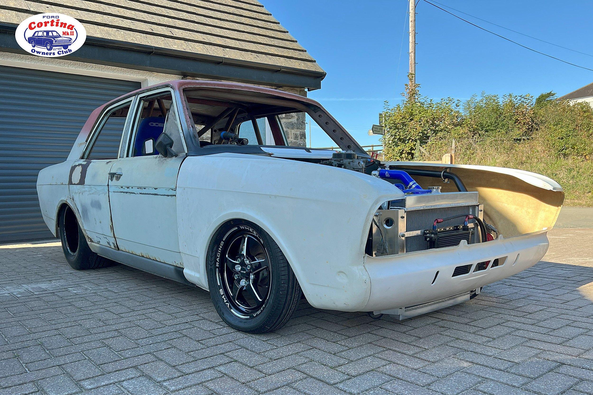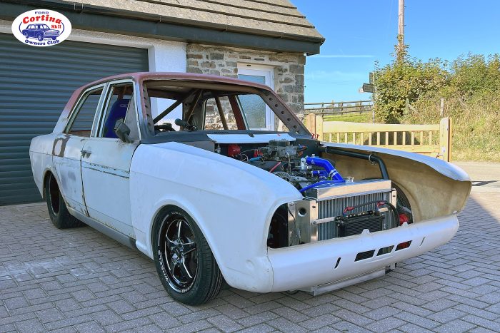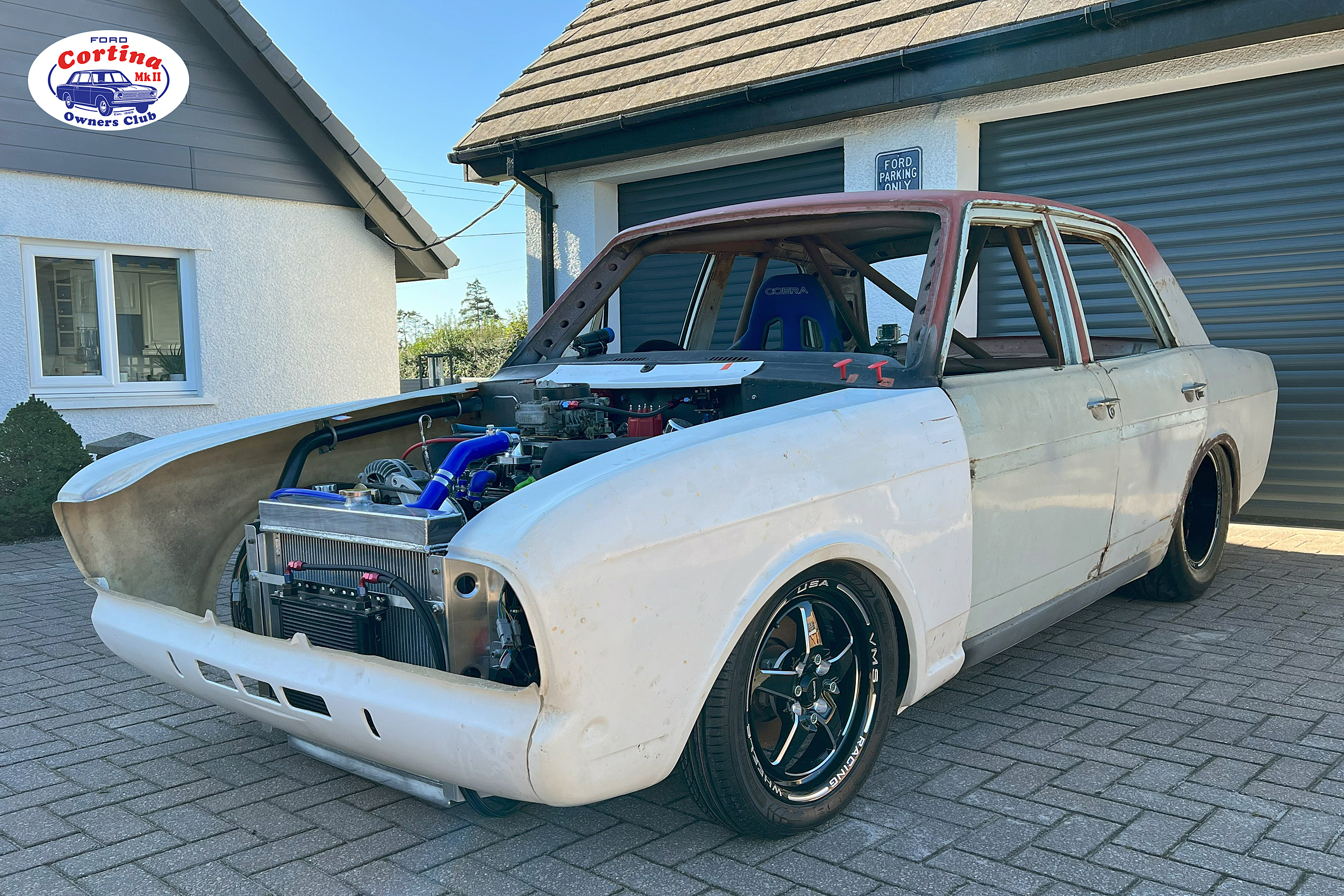 It was around this time that Thierry spotted a MkII Cortina for sale, an early 4dr 1300 precrossflow Deluxe from 1967 in Seafoam Blue. It was a little tired and a bit frilly around the edges, but it was also very original apart from an additional Escort fuel tank in the boot. Thierry had found his perfect base car to mate with that V8 Barracuda engine.